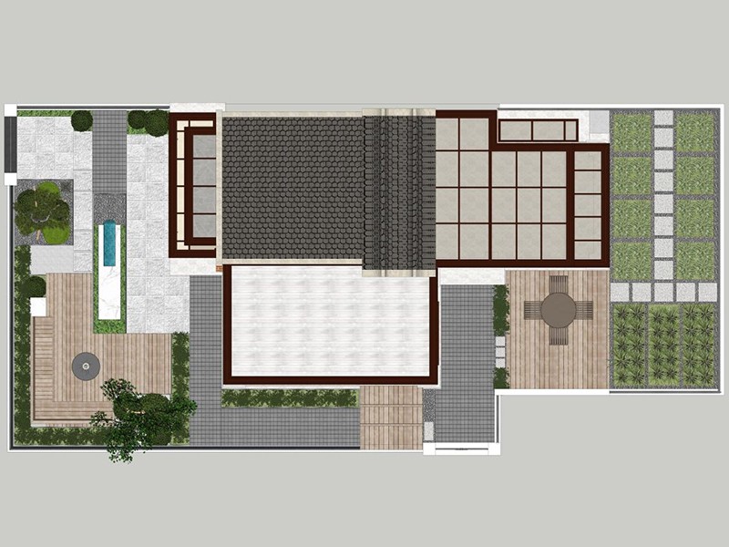 客户找到我门,声明不想做千篇一律的传统院落,倾向现代的风格,这给我门后期的设计可谓是确定了方向,我们着重与强调院内功能板块的分割清晰,再有道路进行串联的模块化组合,得到了休闲会客 自家务农 消暑娱乐 室内借景的目的 保证院落明净整洁,空间宜人舒心的诉求。